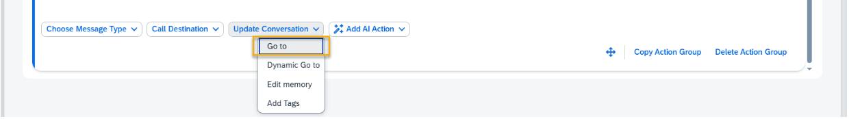 Select the Action type: Update Conversation and choose the Dynamic Go to option.