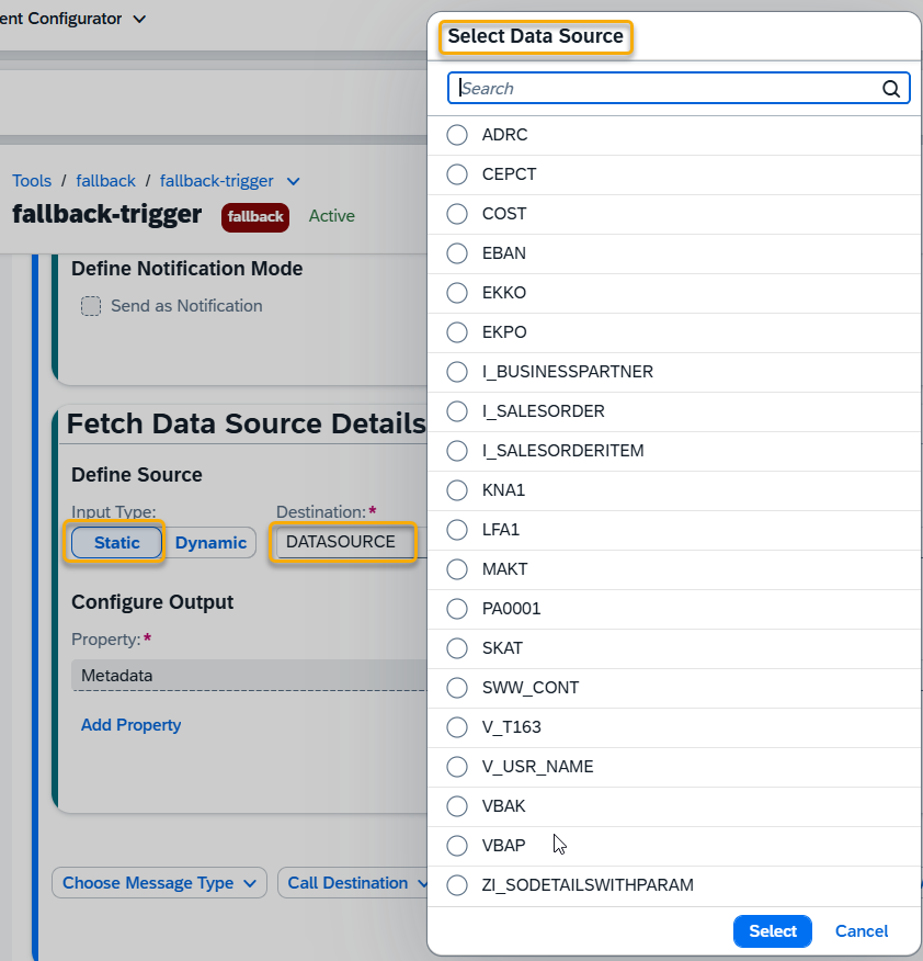 Fetch Data Source Details Action