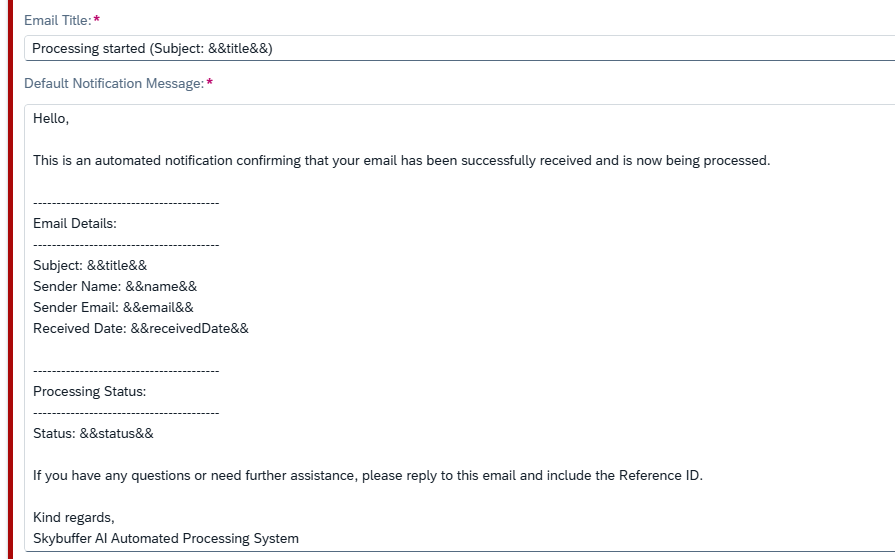 Enable Notify Sender if you want the sender to receive an automated notification when processing begins.