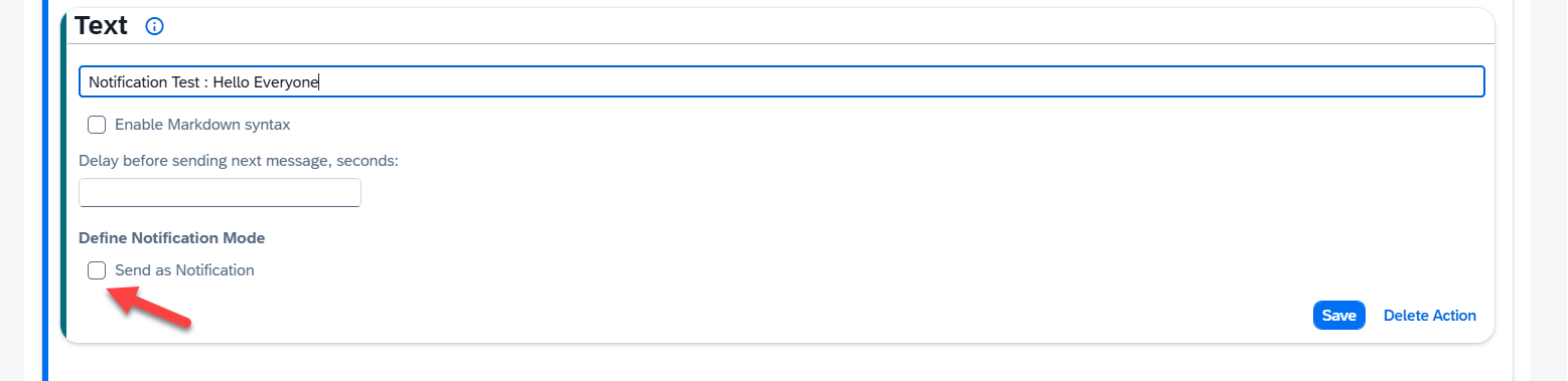 Step 1. To activate notification mode, scroll down to the bottom of the action. Under “Define Notification Mode”- tick the “Send as Notification” Field