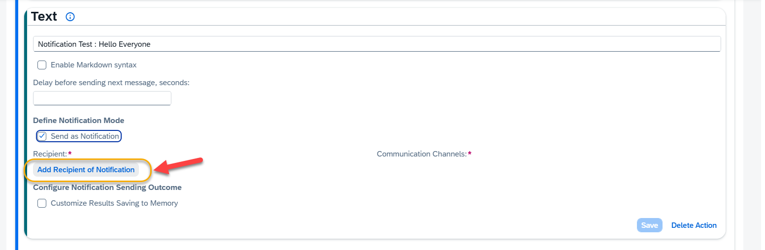 Important: To receive notifications, the recipient must have already initiated a conversation within the specified Teams channel.