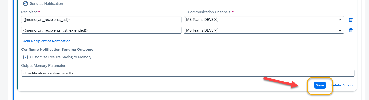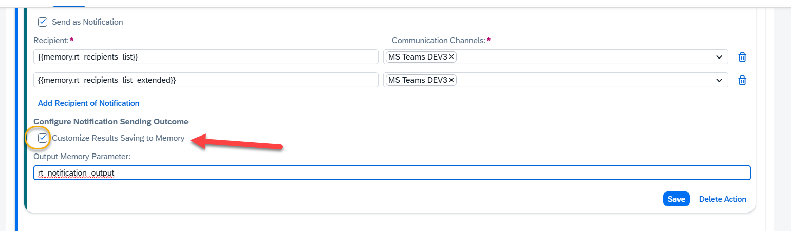 The results of notification sending are saved to memory. By default they are in “rt_notification_output” variable, but you can change it to your liking.
