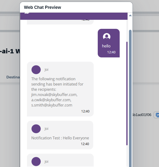 – Message listing the recipients of notification. “The following notification sending has been… “. Mind that this list just shows emails listed as recipients, it doesn’t take success or failure of notifications into account.