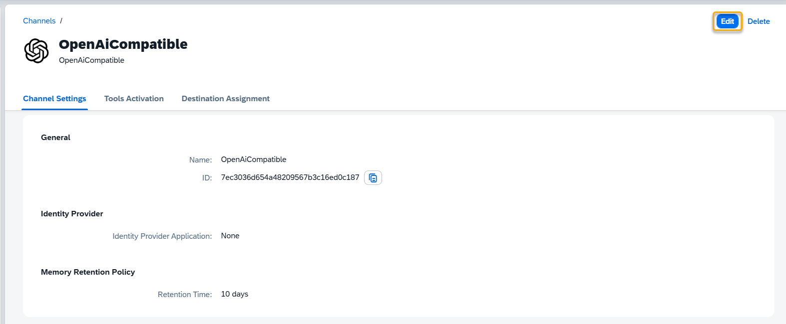 ID – not editable, identifier for the channel