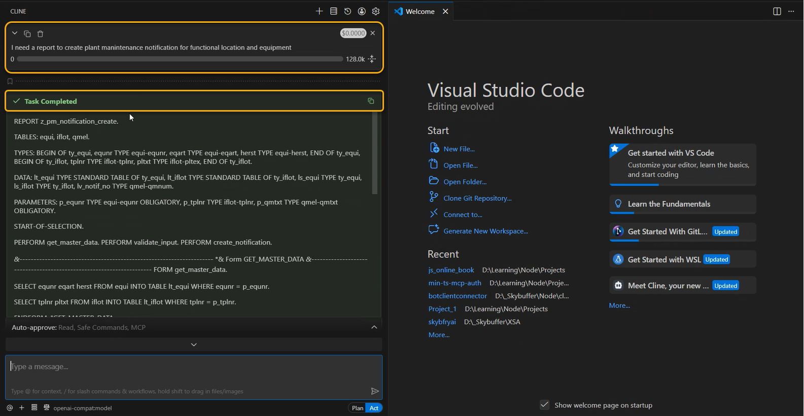 Once the configuration is complete, Cline can send requests to the solution using the OpenAI-compatible API.