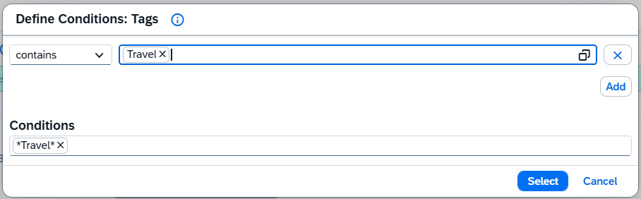 - Not empty: Use to select conversations that have at least one tag assigned.
