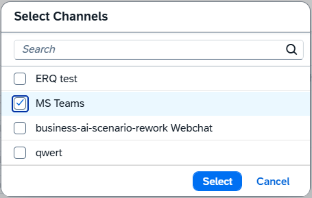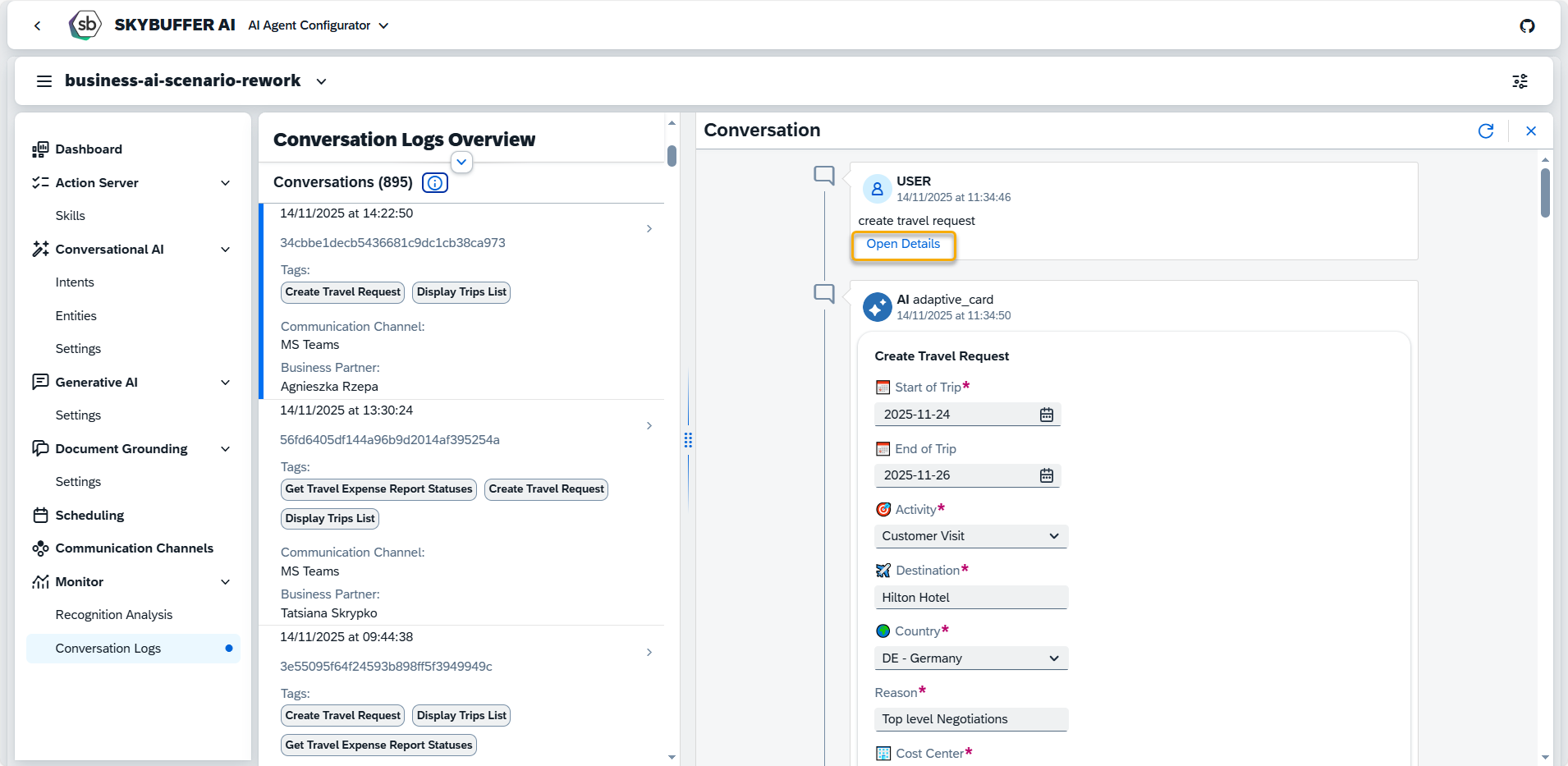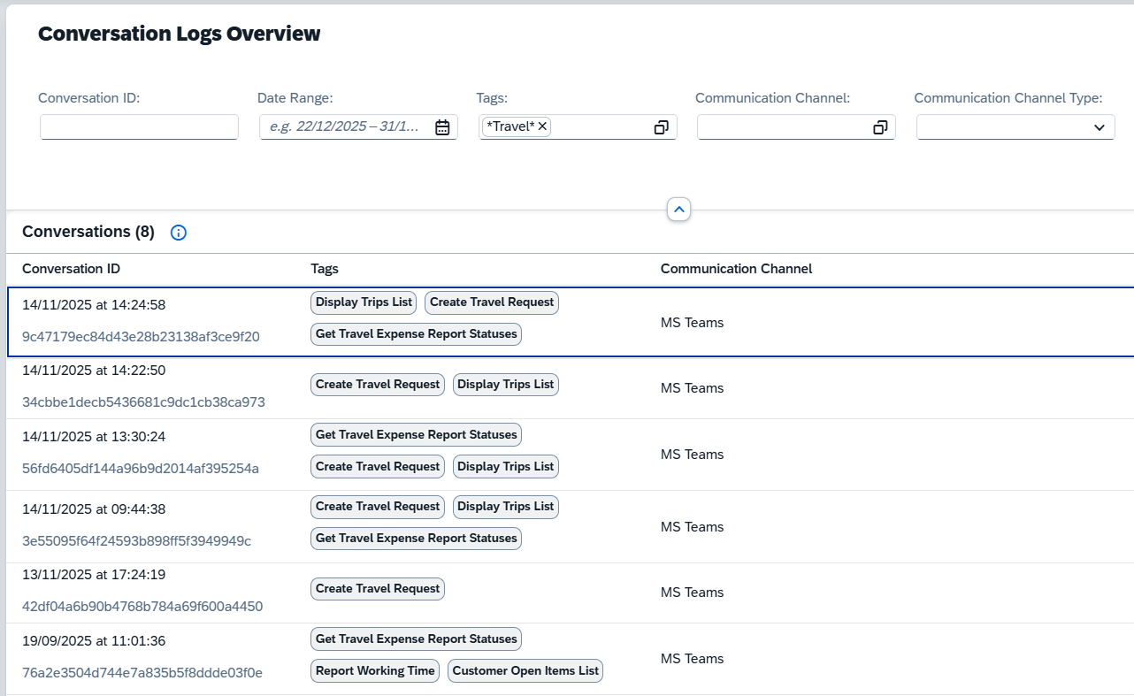 Example: You can filter conversations related only to Travel, such as creating travel requests or retrieving travel expense reports.