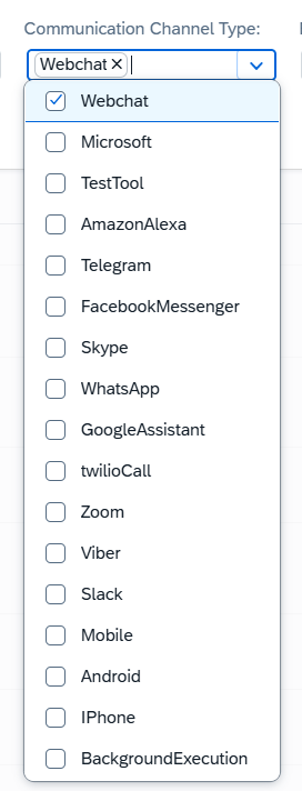 Select specific communication types (e.g., Microsoft, Webchat) to isolate conversations from particular platforms.