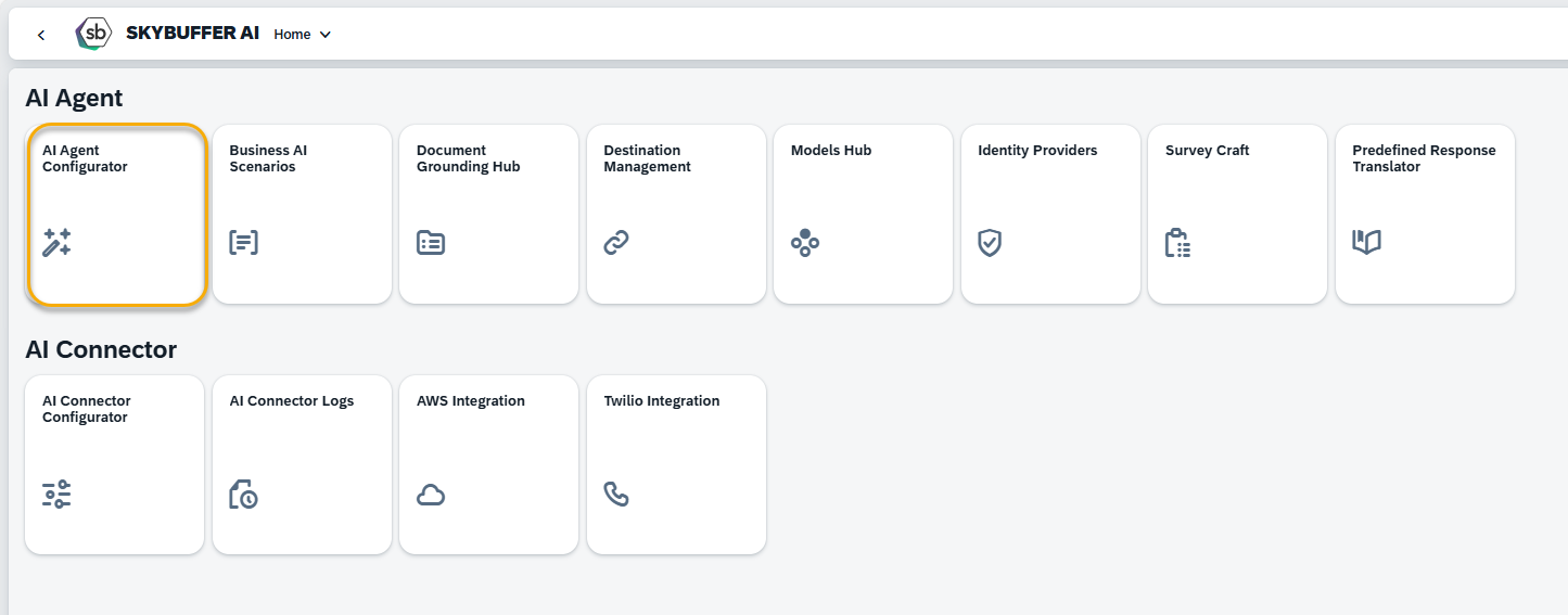Step 1. Open the AI Agent Configurator application in the AI Agent group.