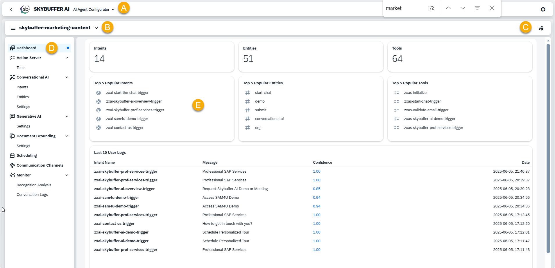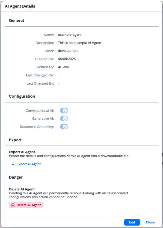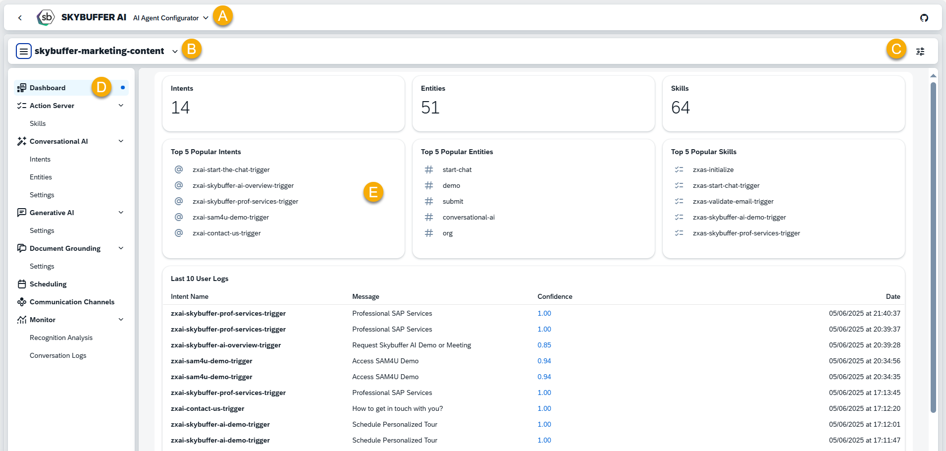 C – Agent Settings – Access the main configuration options for the selected AI Agent.