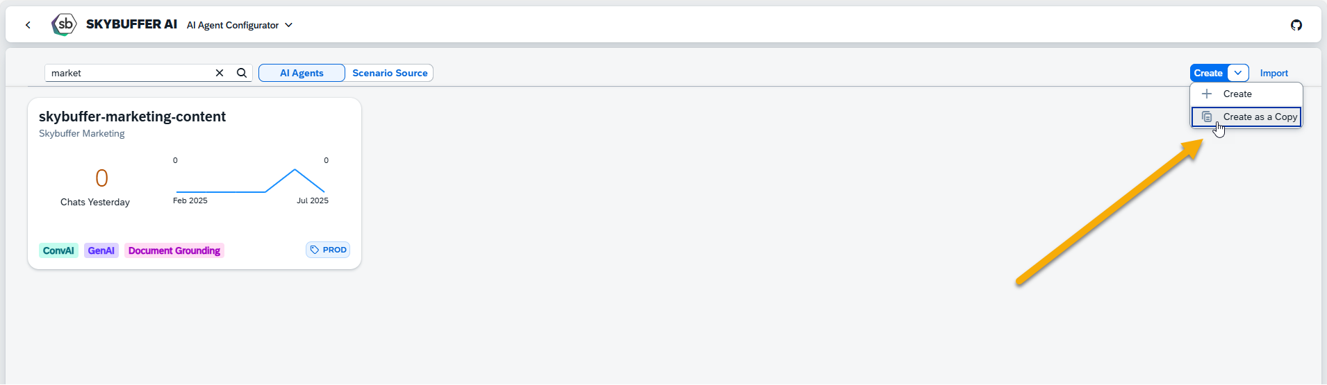 You can also create a new AI Agent by copying an existing one and using it as a foundation for your own project.