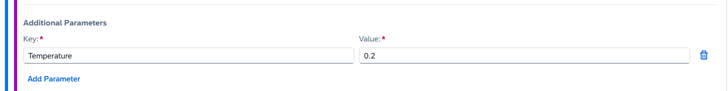 These parameters are sent with the API request and directly impact the model’s behavior and the quality of responses. You can configure them using the ‘Add Parameter’ option in the UI.