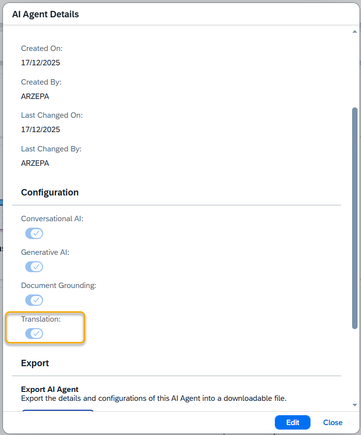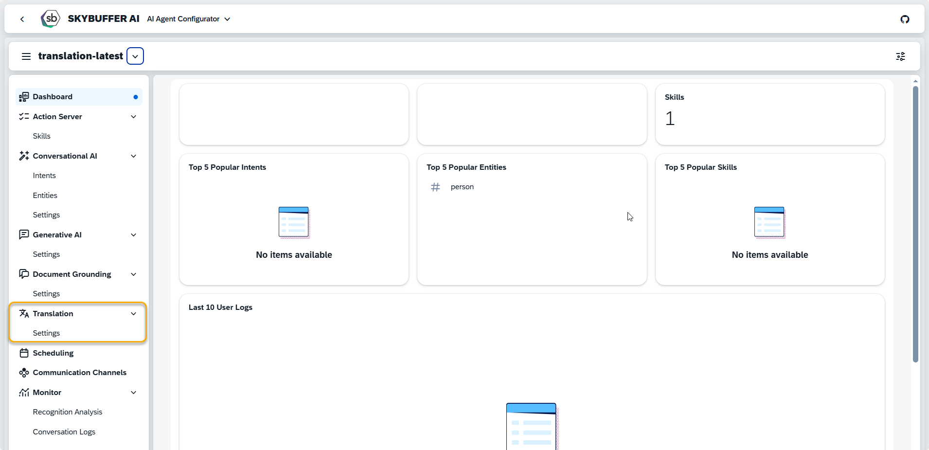 Once enabled, an additional Translation section will appear in the left-side panel, allowing you to configure translation settings.