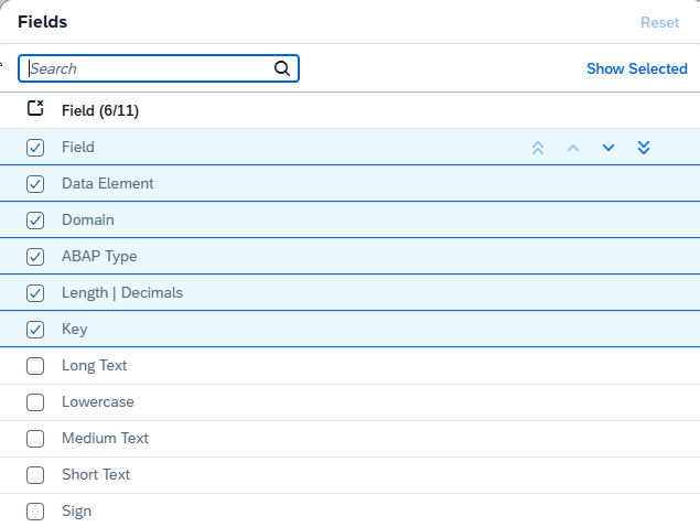 and decide which filds should be visible: