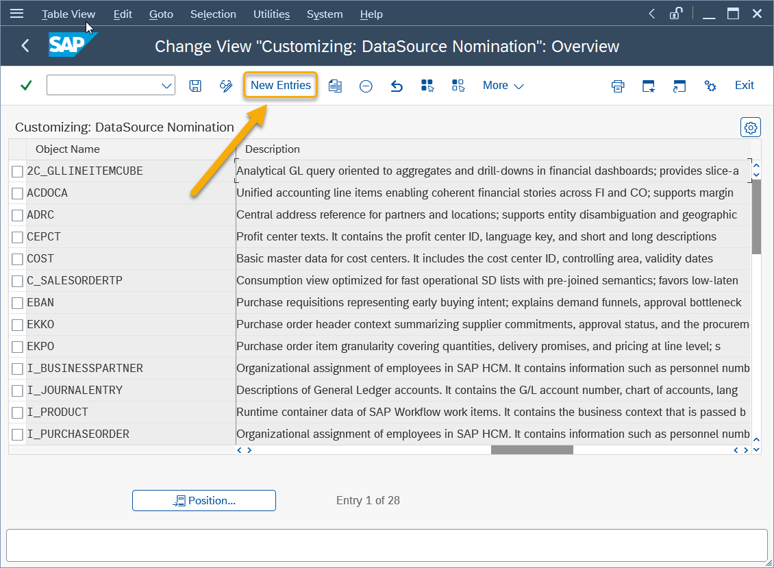 - Data sources must be registered in table /SKYBFR/YAICDSNM