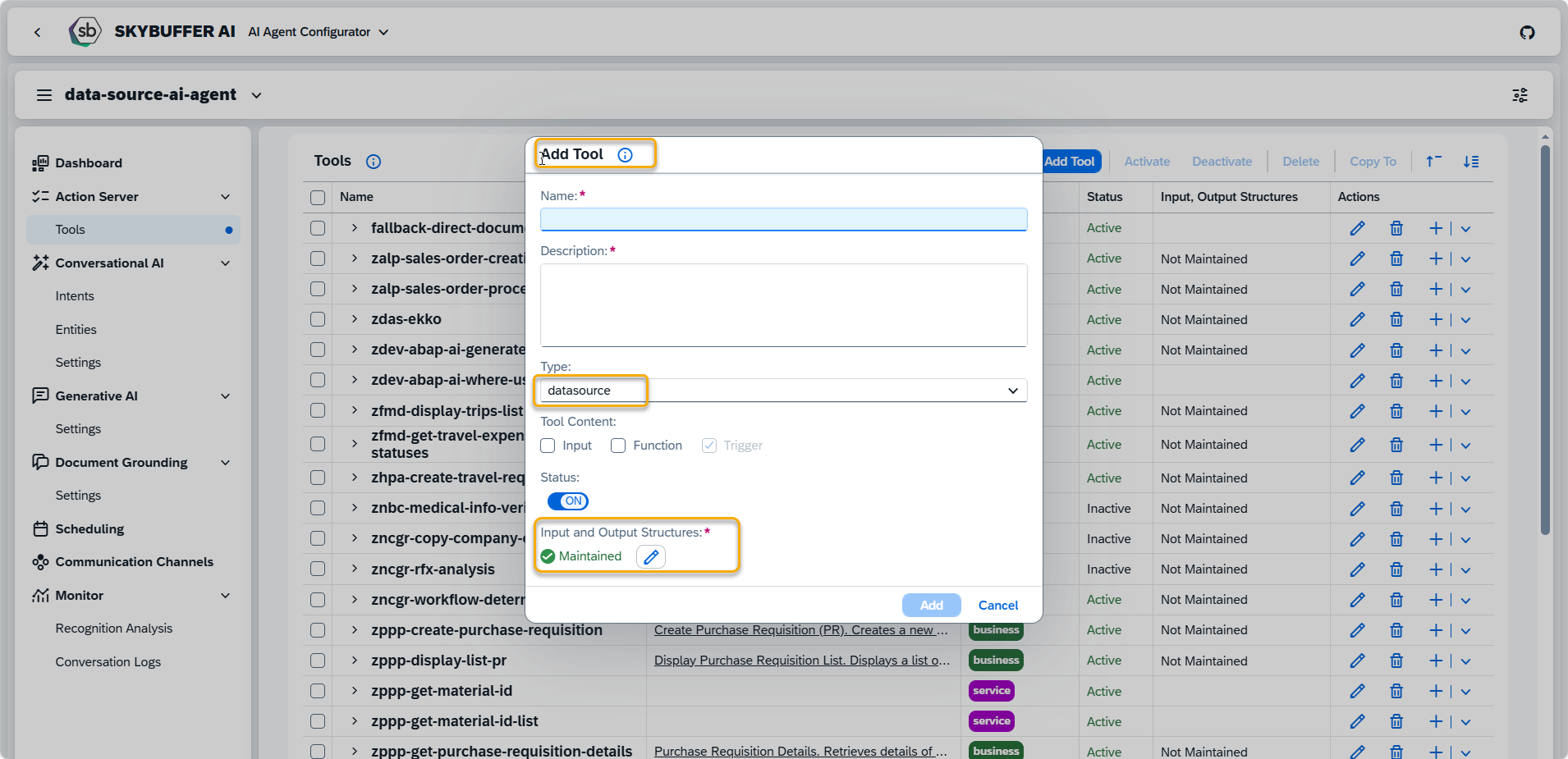 This section describes how Data Sources and Business Tools are executed by the AI Agent, how data is passed into the tool, how results are returned, and how outputs are stored for later use.