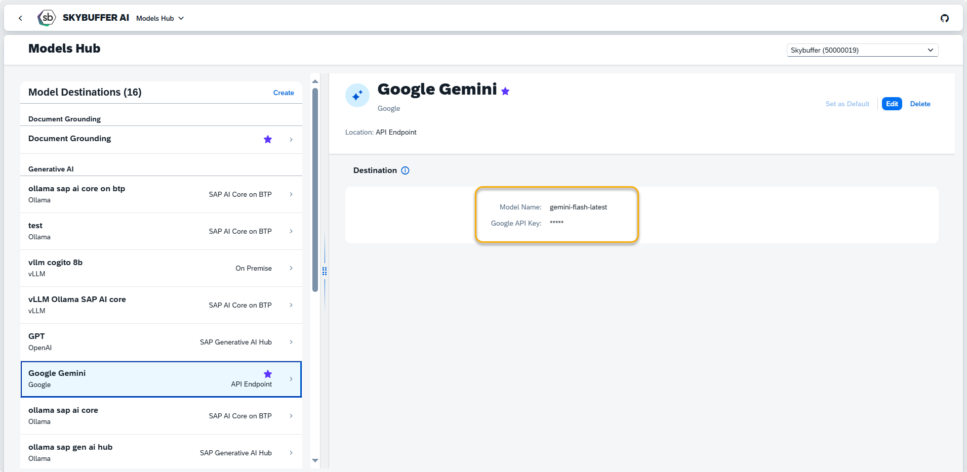 • For Google: Choose either SAP Generative AI Hub or API Endpoint (if you plan to use your own OpenAI API key).