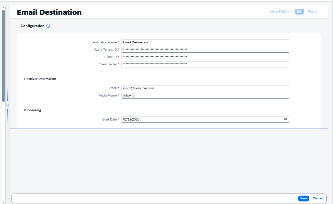 Start Date – Define the earliest date from which emails should be retrieved and processed.