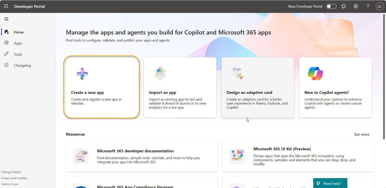 Alternatively, in Microsoft Teams open Other Apps → Developer Portal (or App Studio in older versions).