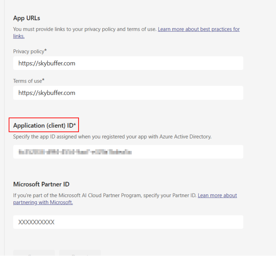 - Application ID – Use the Azure Bot Client ID (the same ID you created when adding the Teams channel).