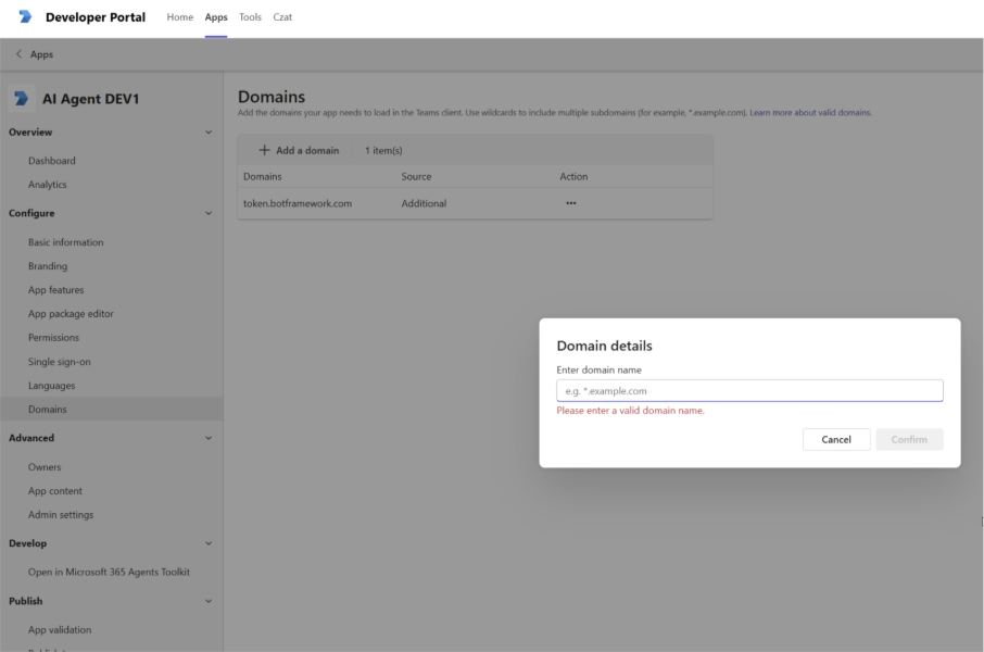 This section describes how to deploy your custom application into Microsoft Teams using the Developer Portal (previously App Studio).