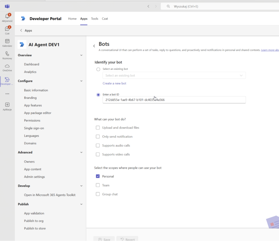 Enter a BOT ID – use the same Azure BOT Client ID as before.